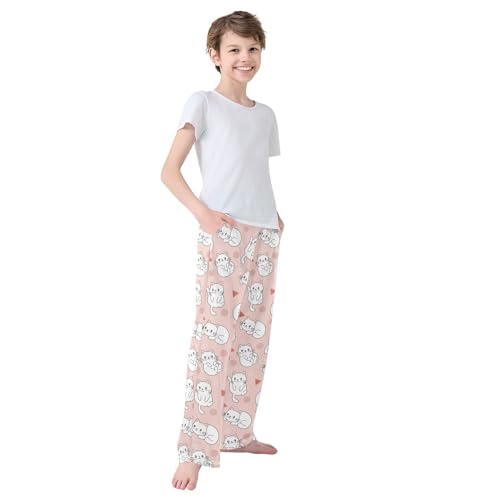 Cute Cat Light Pink Boys Pants for Kids Jogger Pants with Pockets S-XL 6