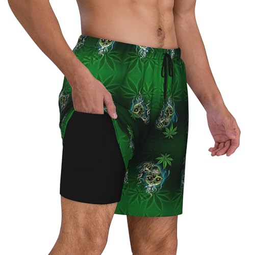 Skull Smoke Weed Mens Double Layer Swim Trunks Summer Casual Board Shorts 1