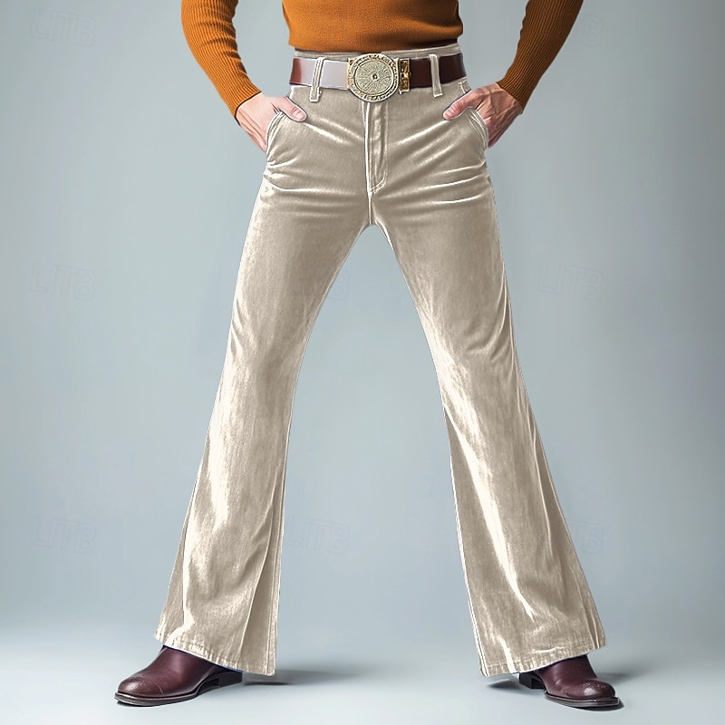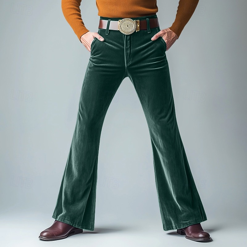 More information about Men's Dress Pants Flared Pants Bell Bottom Trousers Velvet Pants Pocket Plain Comfort Soft Full Length Party Outdoor Daily Fashion Streetwear Blue Green Micro-elastic