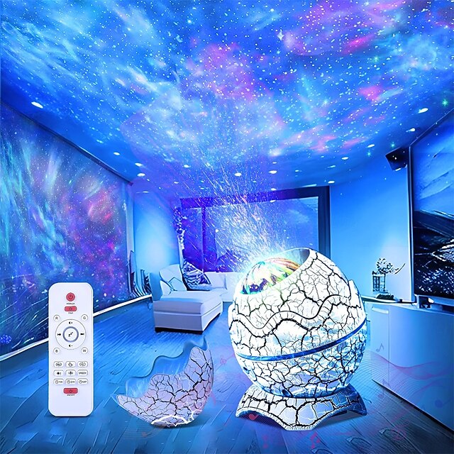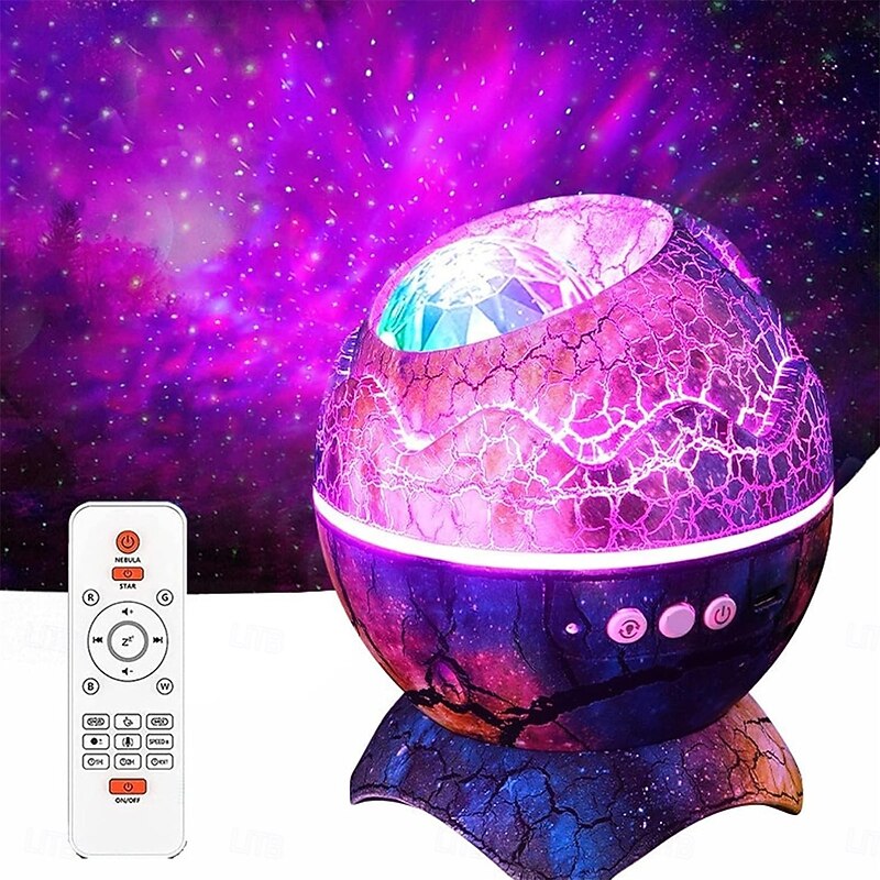 Highlights - 4 in 1 Star Projector Night Light combines a projector, nightlight lamp, white noise machine, and music player all in one device, creating an extraordinary audio and visual experience. - Features 14 vibrant colors that project shining stars and memorizing nebula cloud, bringing the vast starry night skies indoors where you and kids can enjoy the peaceful galaxy in your bedroom or kids room. - White Noise Sound Machine includes 19 popular white noise sounds that are both relaxing and soothing while you try to fall asleep or during meditation. - Bluetooth 5.0 Speaker and Voice Control function allows you to connect your device via Bluetooth to play some music through the galaxy light projector and watch in amazement as the little stars blink and the nebula cloud moves rhythmically. - Remote Control and Auto-off Timer functions provide flexibility when trying to set a timer to turn off at a certain time. The device will automatically power off after 4 hours if the timer is not set.
