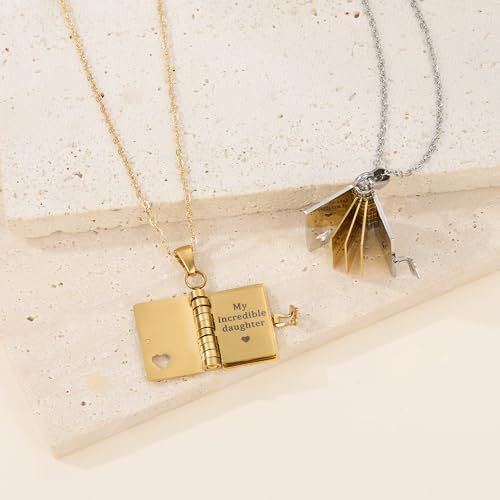 MOROTOLE For Daughter-My Incredible Book Necklace,To My Daughters from Mom and Dad Book Necklace,Adjustable Book Necklaces with 6 Pages of Engraved Information,Book Necklaces for Daughter 6