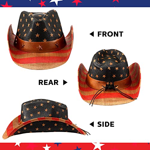 Patriotic Cowboy Hat 4th of July Vintage American Flag Hat USA Classic Western Cowgirl Hat for Men Women 4