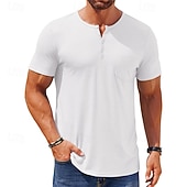 More information about Men's T Shirt Henley Shirt Tee Short Sleeve Shirt Short Sleeve Henley Summer Color Block Fashion Designer Basic Buttons Vacation Street Going out Black White Blue Top Tee for Men