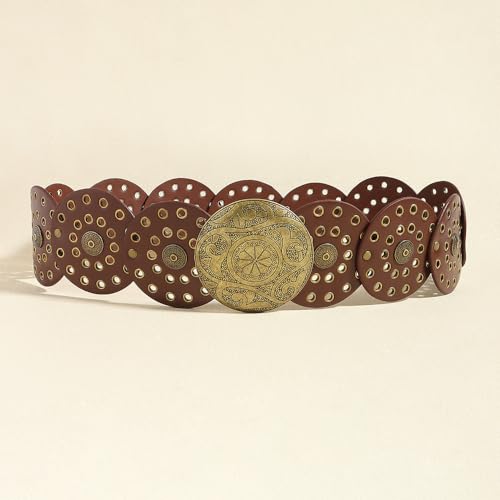 HOT ! Wide-Disc-Western-Belt-Womens Vintage Rivet Belts Concho-Punk Boho-Hollow-Waist-Belt for Dress Jeans