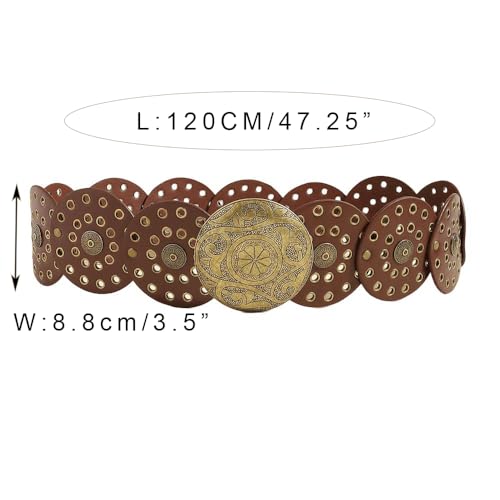 More information about Wide-Disc-Western-Belt-Womens Vintage Rivet Belts Concho-Punk Boho-Hollow-Waist-Belt for Dress Jeans