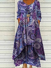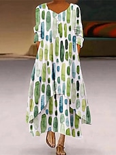 More information about Women's Long Dress Maxi Dress Casual Dress Print Dress Fashion Modern Daily Beach Weekend Regular Fit Striped Flower 3/4 Length Sleeve V Neck White Purple Green Spring Fall