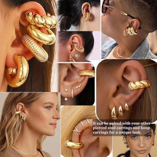 KISS WIFE 4 Pcs Chunky Ear Cuffs Non Piercing for Women, 14K Gold Plated Clip On Cartilage Hoop Earrings Jewelry Gifts 6
