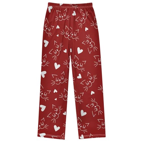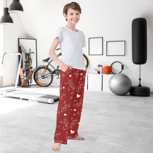 Boy's Pj Pants Valentines Day Cats Lovers Hearts Eyes Lounge Bottoms Elastic Waist Kids Joggers with Pockets 6-14 6