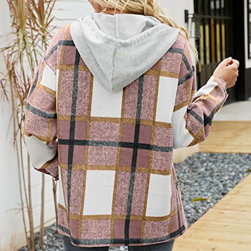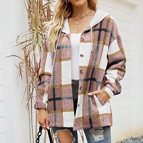Womens Shacket Plaid Button Down Long Sleeve Flannel Jacket Casual Hoodies Coats Fall Outfits Fashion Clothes 2025 2