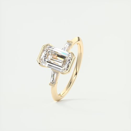 More information about 1-2-3-4-5 Carat Emerald Cut VVS1-2 D/E/F Color IGI Certified Lab Grown Diamond Half Bezel Three Stone Solitaire Engagement Ring For Women
