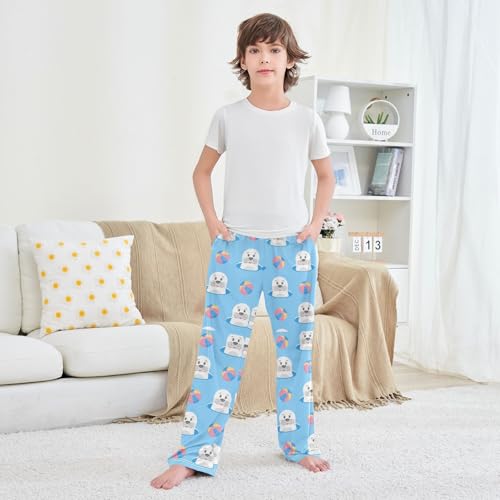 ZZXXB Seal and Balloon Boys Long Pants Soft Trousers Elastic Waist Kids Lounge Bottoms with Pockets S-XL 1