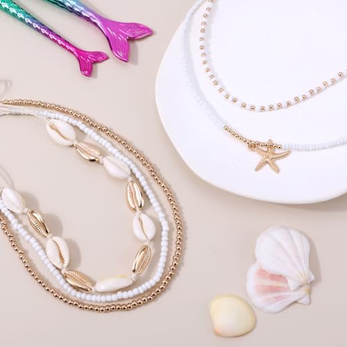 HOT ! 5pcs Summer Beach Necklace, Boho Shell Seashell Starfish Beaded Surfer Necklaces Set for Women Holiday Vacation Party Ocean Friendship Jewelry Gift