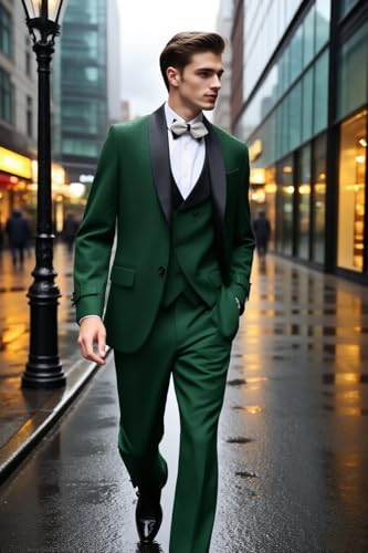 3 Piece Mens Tuxedo Suit Set Slim Fit Men Wedding Prom Party Suits Blazer Pants Shawl Collar Dinner Double Breasted Suit Set 3