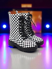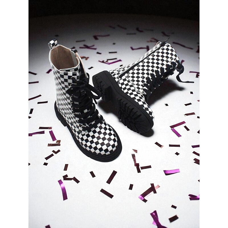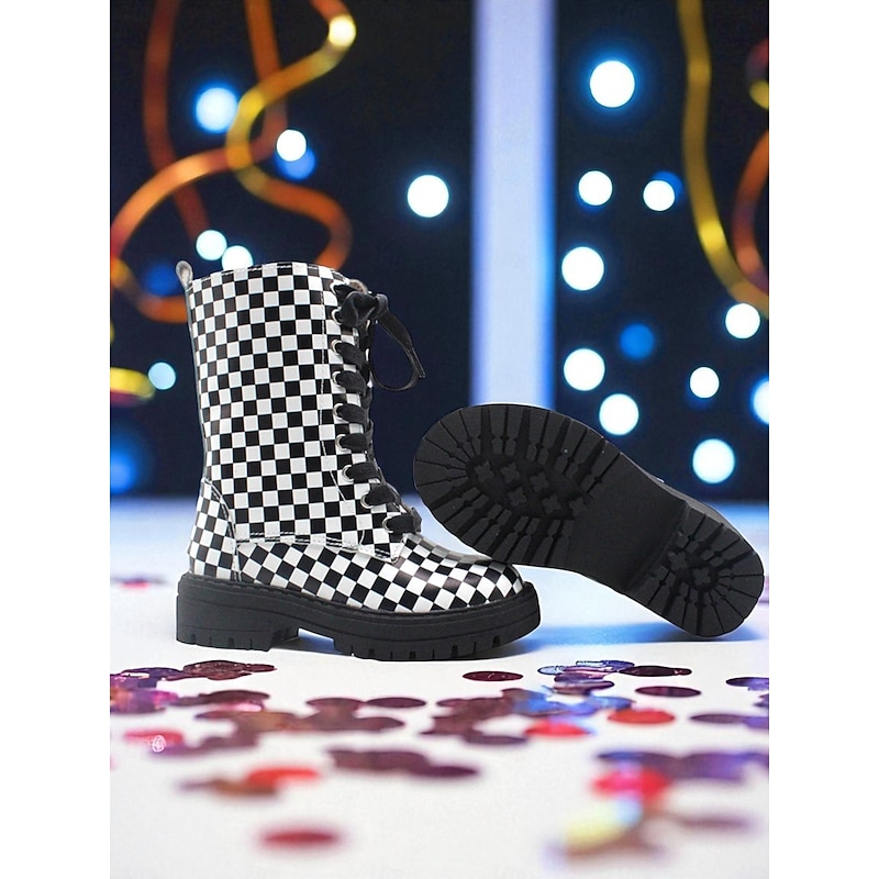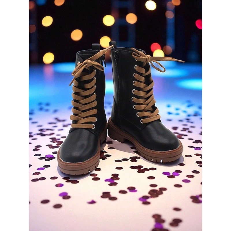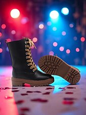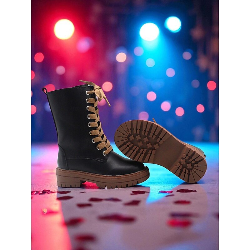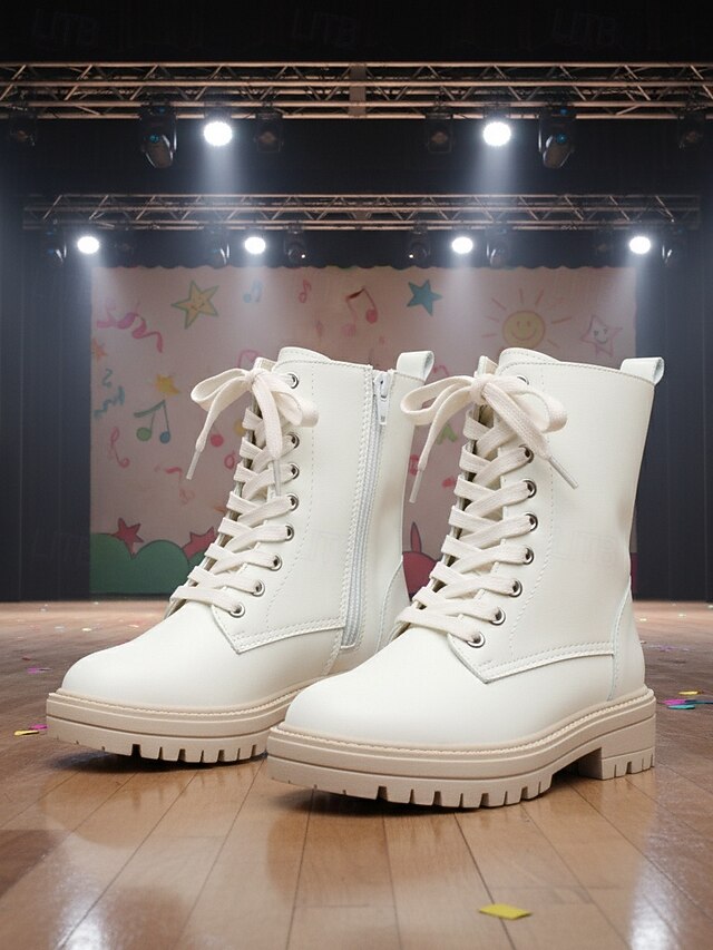 More information about Korean Idol Inspired Pop Star Costume Shoes Girls' White Mid-Calf Combat Boots with Lace-Up Design and Side Zipper for Dance Performances and Stage Outfits