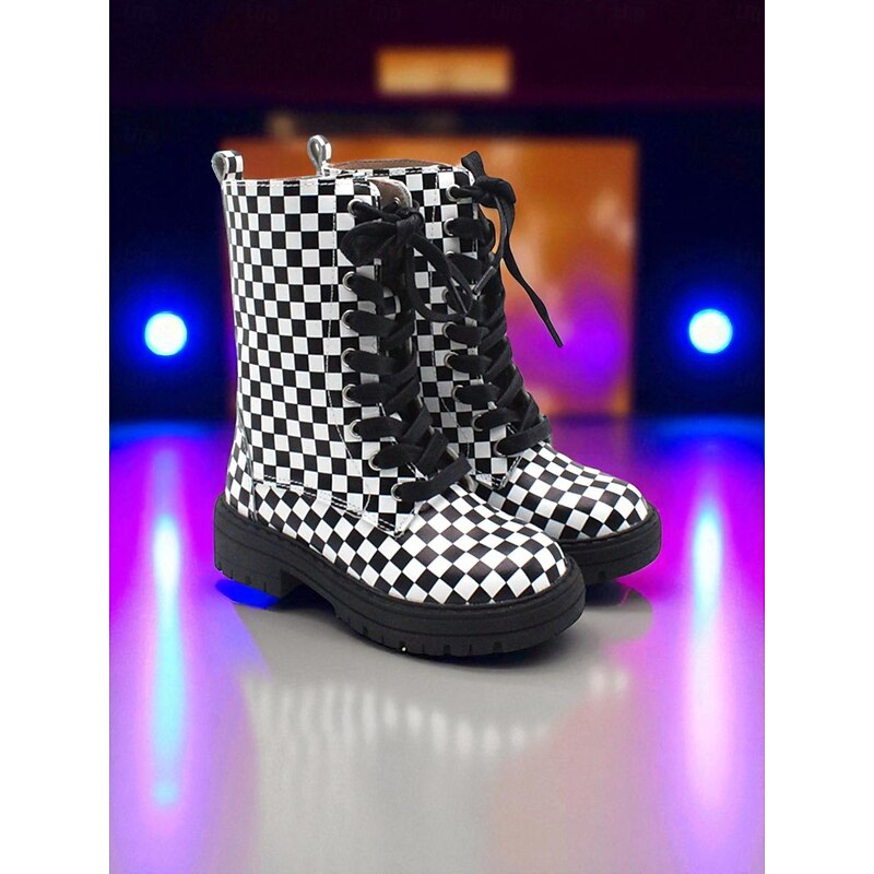 HOT ! Korean Idol Inspired Pop Star Costume Shoes Girls' White Mid-Calf Combat Boots with Lace-Up Design and Side Zipper for Dance Performances and Stage Outfits