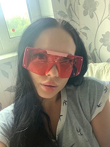 • FEISEDY Square One Piece Shield Design: Oversized Flat Top Frame Leading the fashion trend, Wide one piece lens design with futuristic appearance.