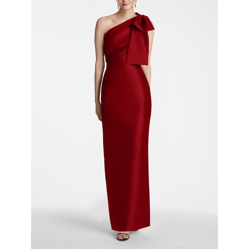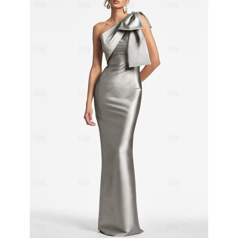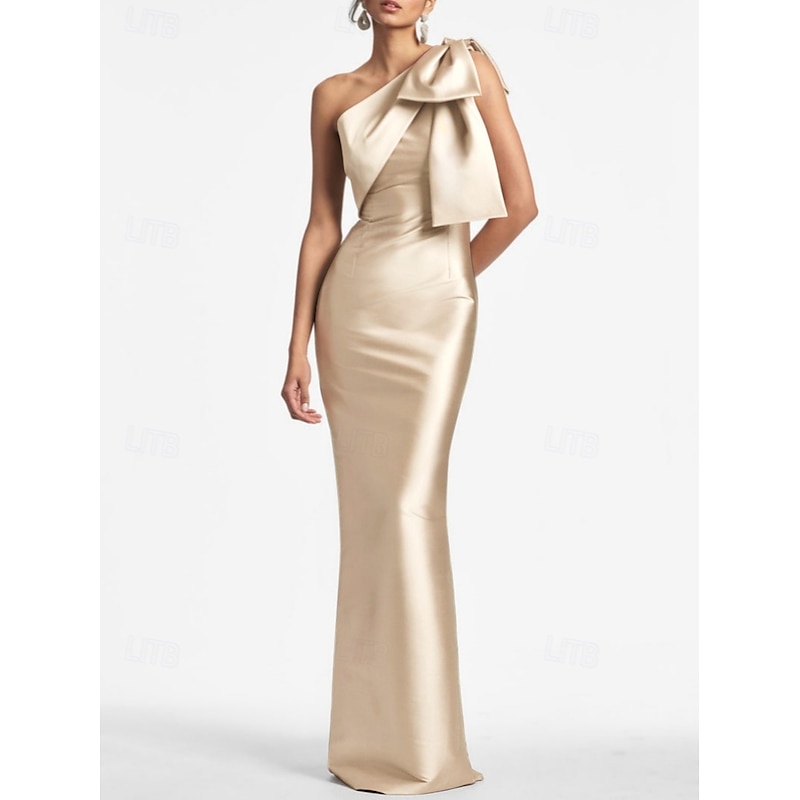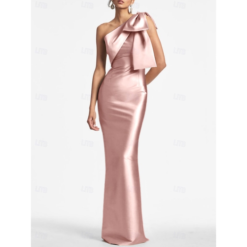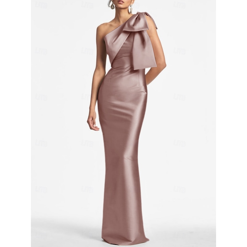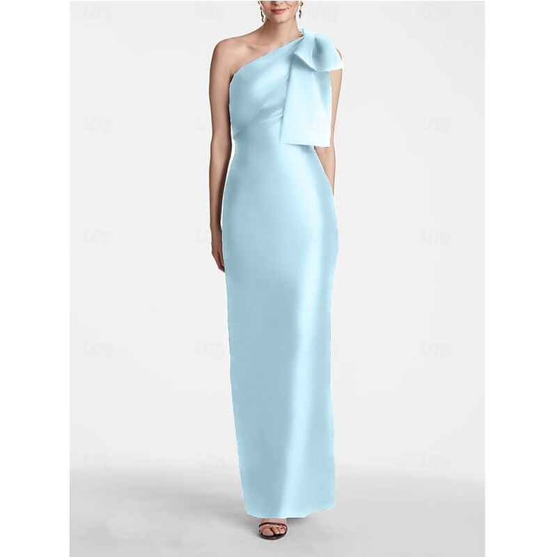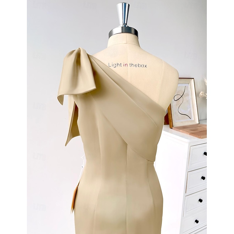 More information about Mermaid Evening Gown Elegant Dress Formal Wedding Guest Ankle Length Sleeveless One Shoulder Satin with Bow(s) Slit Masquerade Dress