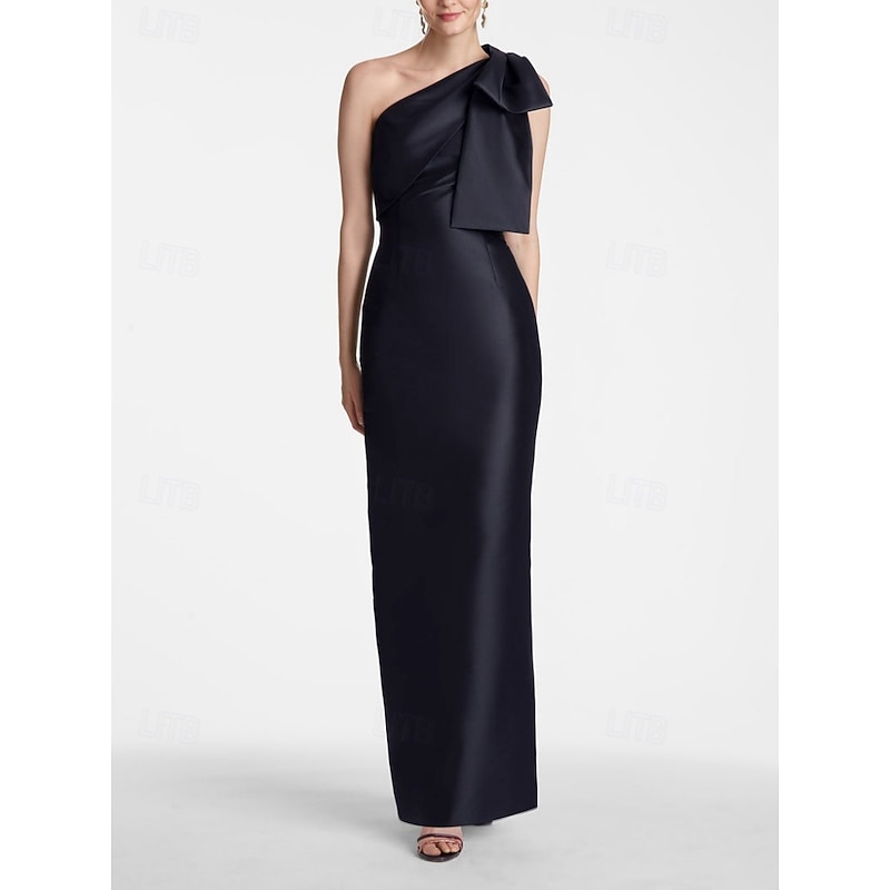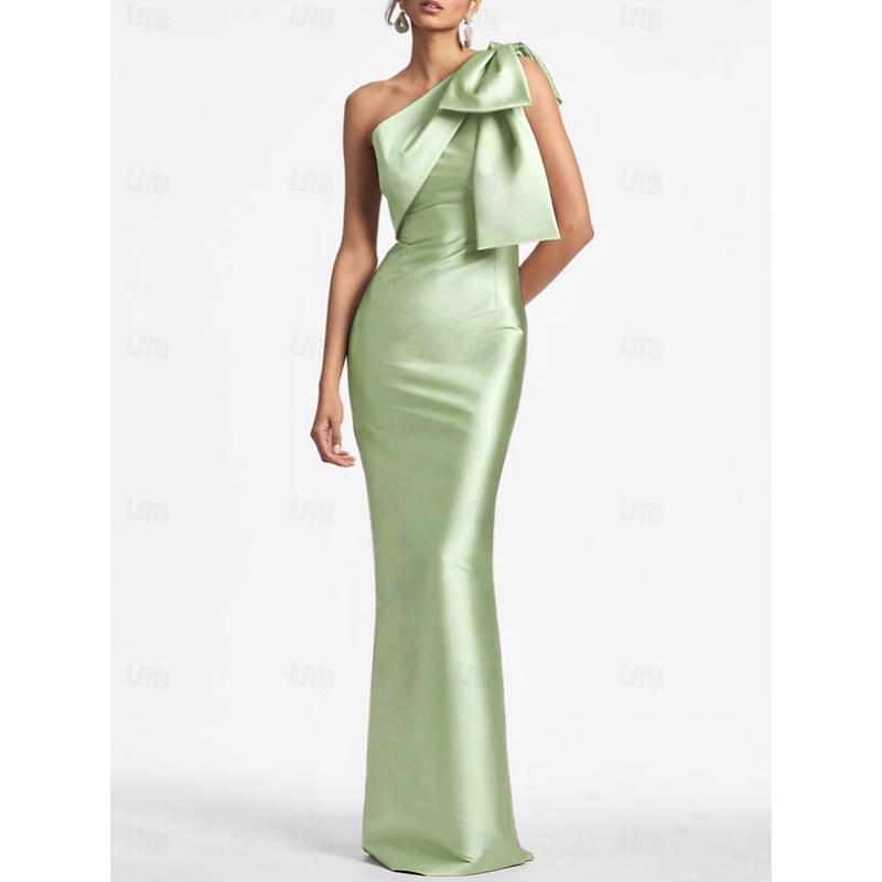 HOT ! Mermaid Evening Gown Elegant Dress Formal Wedding Guest Ankle Length Sleeveless One Shoulder Satin with Bow(s) Slit Masquerade Dress