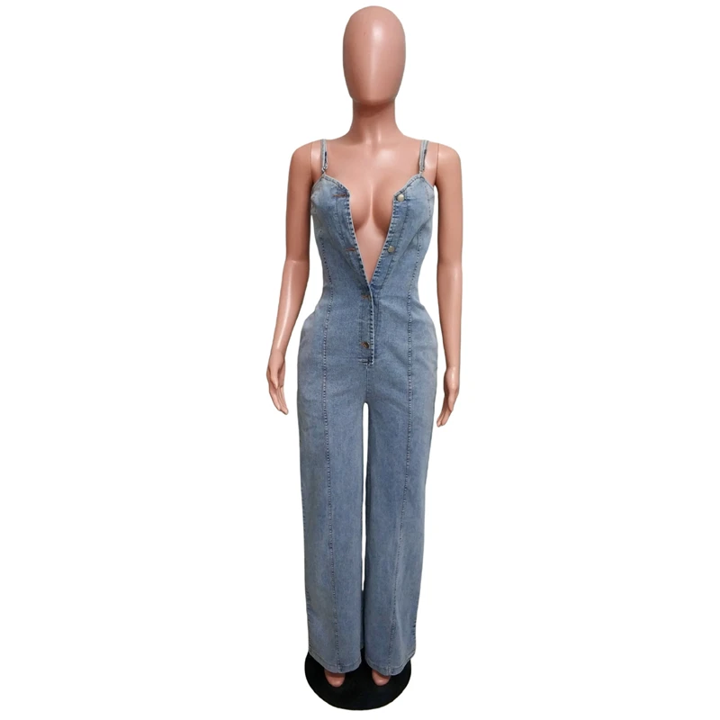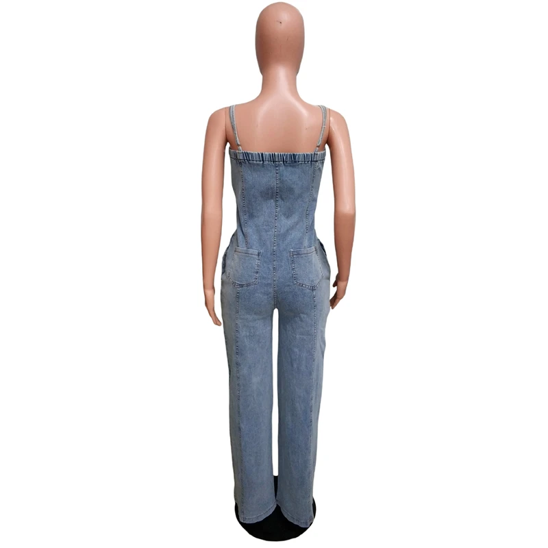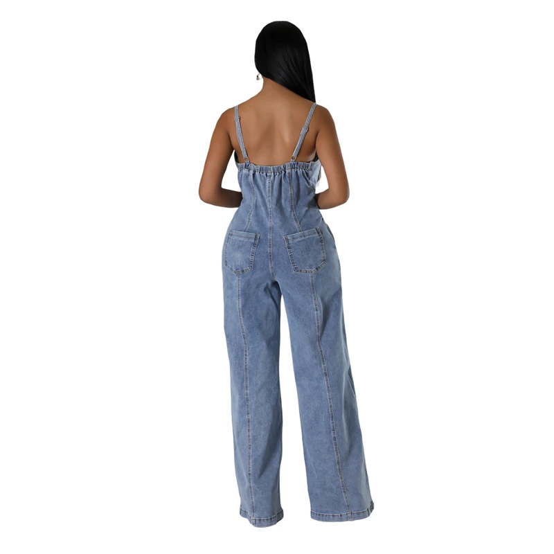 Wide Leg Sleeveless Denim Romper Overalls Outfit. S-2X