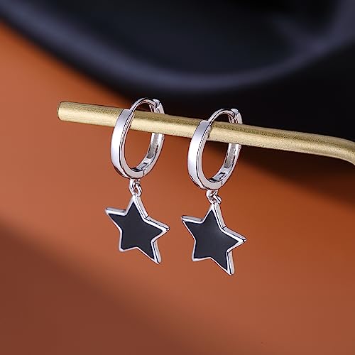 HOT ! SLUYNZ Solid 925 Sterling Silver Black Star Hoop Earrings for Women Teens 1.3CM Star Hoop Dangle Earrings