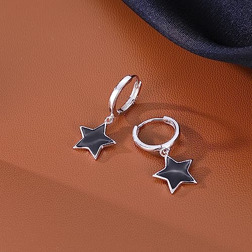 SLUYNZ Solid 925 Sterling Silver Black Star Hoop Earrings for Women Teens 1.3CM Star Hoop Dangle Earrings 1