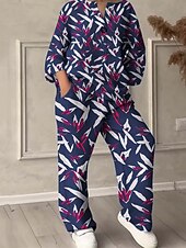 More information about Women's Active Fashion Pants Sets Long Sleeve V Neck Graphic Print Vacation Daily Holiday Blue Summer Regular Fit