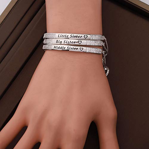 CHOORO Best Friend Jewelry Big Sister Middle Sister Little Sister Bracelet Set Sisters Rhinestone Bracelet Wedding Gifts for Sisters 1