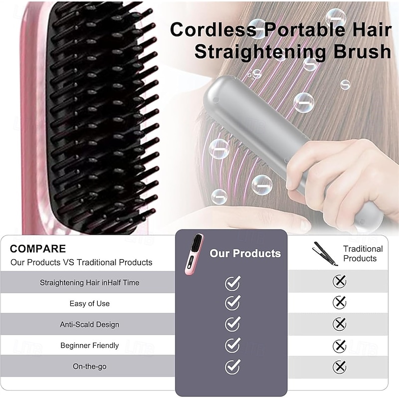 Cordless Hair Straighteners Hot Air Brush Negative Hot Comb Hair Straightener 20s Fast Heating Ceramic & Anti-Scald Design 1