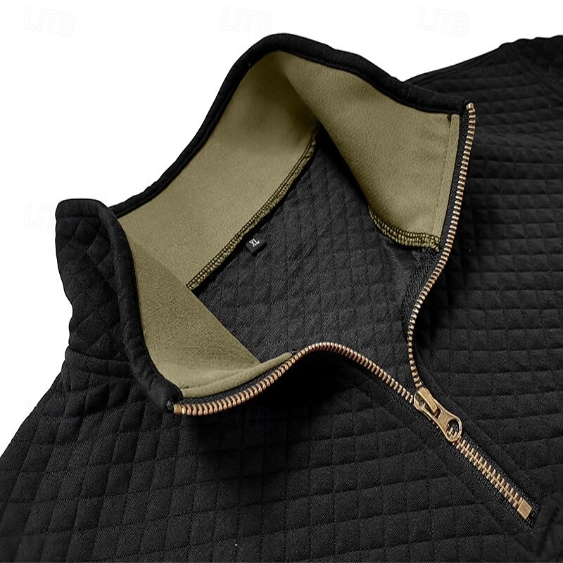 HOT ! Men's Sweatshirt Waffle Sweatshirt Pullover Hoodie Sweatshirt Pullover Quarter Zip Sweatshirt Army Green Burgundy Royal Blue Brown Khaki Standing Collar Plain Patchwork Sports & Outdoor Casual Daily