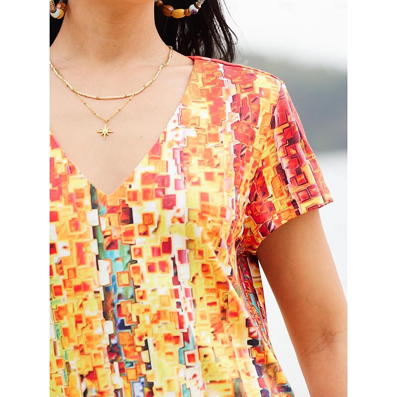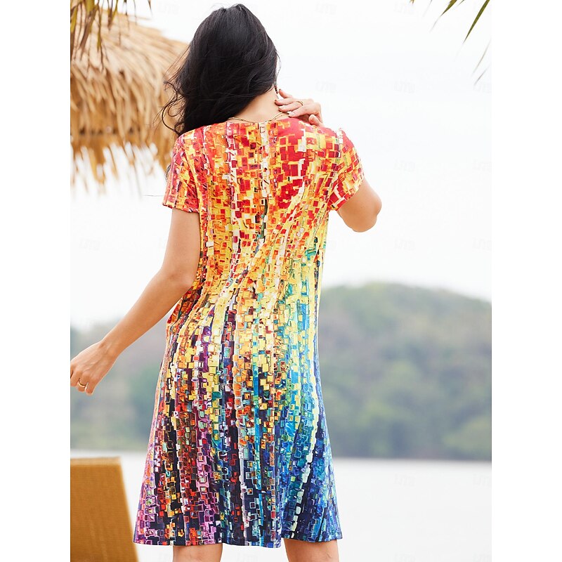 Highlights [Fabric]: Crafted from high-quality polyester, this casual dress ensures lightweight comfort and breathability, ideal for spring and summer wear. The addition of cotton spandex jersey provides a touch of elasticity for easy movement and a comfortable fit. [Fit]: Designed with a regular fit, this dress offers a relaxed silhouette that is both comfortable and stylish. Its short sleeves and V-neckline contribute to a casual yet elegant look suitable for a variety of occasions. [Design Highlights]: This mini dress features a stunning ombre floral print in shades that transition smoothly across the fabric, creating an eye-catching effect. The modern asymmetrical hemline adds a distinctive flair, enhancing the dress's contemporary appeal. [Occasions]: Perfect for vacations, holidays, casual outings, or weekend gatherings, this dress is versatile enough to suit any warm-weather event. Pair it with your favorite accessories for a chic daytime appearance. [Size Range]: Available in sizes S to XXL, this dress offers a range of options to ensure the perfect fit for various body types.