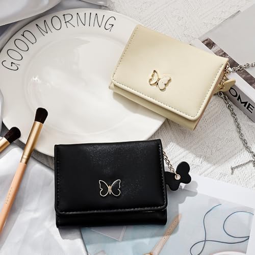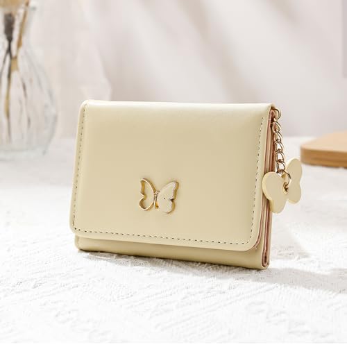 HOT ! Small Wallets Woman, Cute Tri-fold Ladies Coquette Wallet for Women, Butterfly Design Business Credit Card Coin Holder Purse with ID Window for Cash Key Change (Yellow)