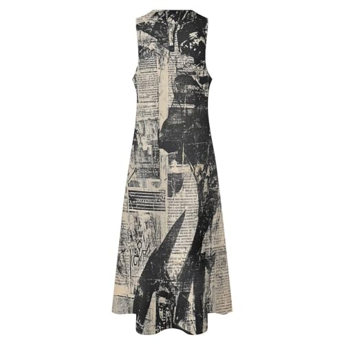 Newspaper Print Women Summer Casual Long Dress Elegant Sleeveless Beach Vacation Maxi Sundress 1