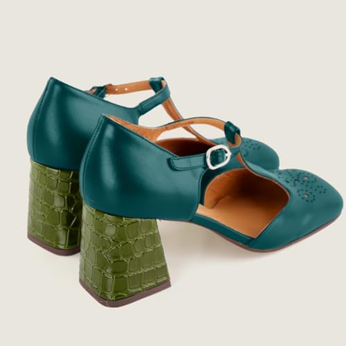 • Patchwork & two tone: One of the biggest highlights of these teal green block heel Mary Jane shoes ankle t-strap sandals is their matte and crocodile two tone design. The matte part of our grey black ankle t-strap mary jane chunky heels crocodile presents a low-key and understated texture, while the crocodile pattern part attracts attention with its unique texture and luster.
