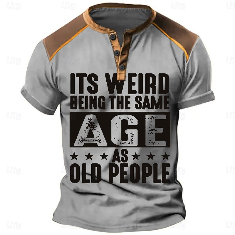 It's Weird Being The Same Age Men's Fashion Casual Street Style 3D Print T shirt Tee Henley Shirt Street Sports Outdoor Casual T shirt Blue Green Khaki Short Sleeve Henley Shirt Spring & Summer 1