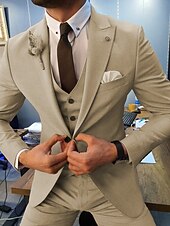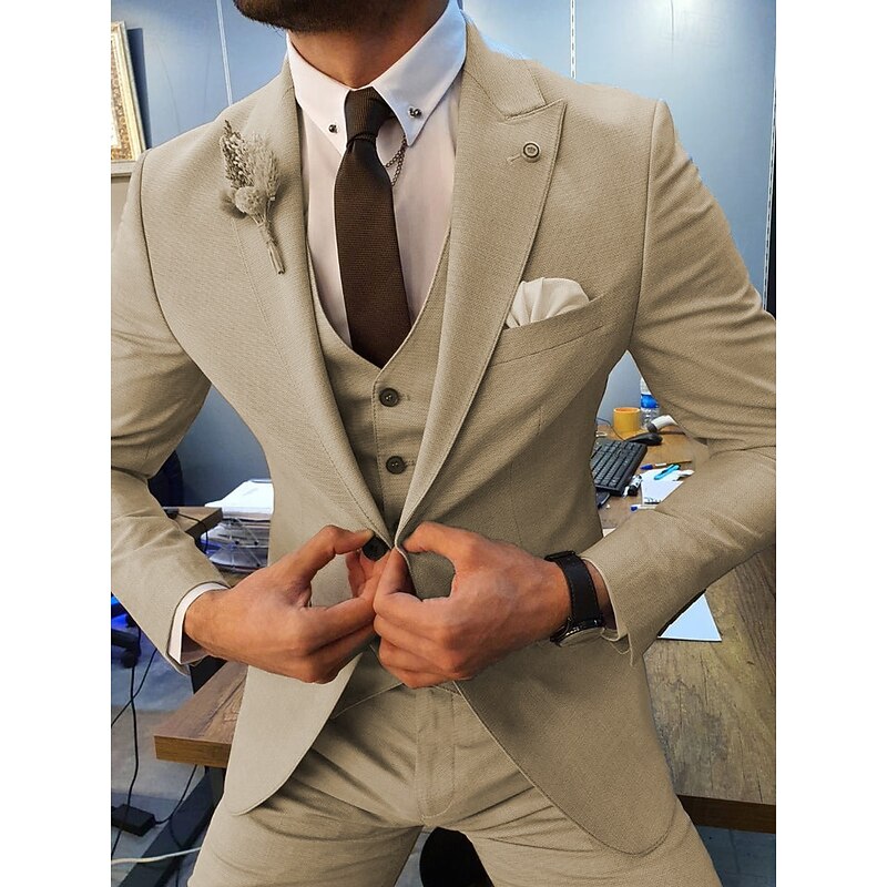 More information about Men's Wedding Suits Peak Dark Khaki Beige Business Formal Solid Colored Tailored Fit 3 Piece Single Breasted One-button