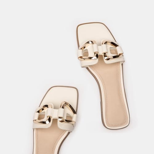 Lossarye Women's Metal Chain Open Square Toe Slide Sandals Summer Casual Comfortable Slip On Flat Sandals Beach Slippers 7