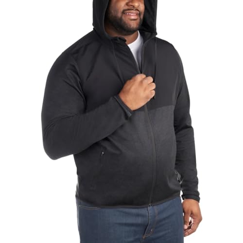 HOT ! KIRKLAND Signature Men's Mixed Media Jacket, Woven and Knit Fabric, Drawcord Hood, Zippered Pockets (US, Alpha, Large, Regular, Regular, Black)