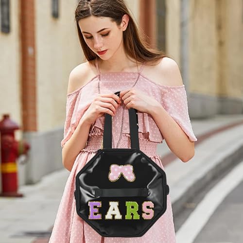 • Glitter chenille letters bow:The handle and adjustable shoulder strap provide you with more convenience when using it. This mouse ear holder is a perfect way to hang your ears and be hands free when exploring any of the parks, including school, office, work, travel, picnic, outdoor beach