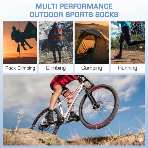 • FOR WORK AND ATHLETIC: Mens hiking socks are the ultimate choice for sports and outdoor activities. Whether you're hiking, trekking, camping or engaging in other athletic pursuits, these mens crew socks will give you the support, comfort and durability you need to perform at your
