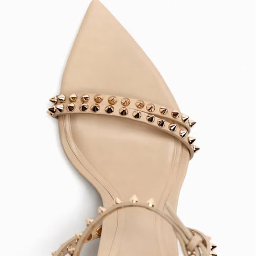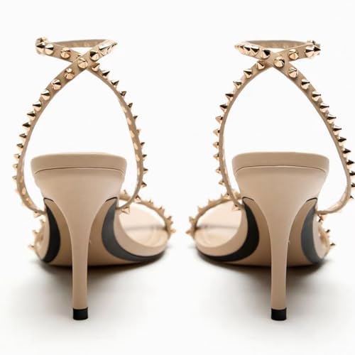 Women's Studded Strappy Open Pointed Toe Stiletto Sandals,Summer Fashion Rivets Ankle Strap Sexy High Heels Party Dress Shoes 7