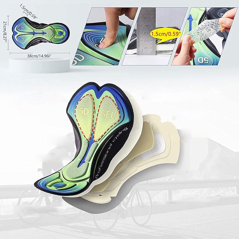 Highlights 【5D PADDED BICYCLE SHORTS】:Specially designed with shaped as your bike seat and stitched 5D thickened padded, which can protect friction between hip and your bike seat, fit more tightly,relieving hip pain during the long riding. 【ANTI-SLIP LEG GRIPS】:The width, soft and subtle silicone leg grippers eliminate slipping and chafing and keep the chamois pad in the right place, letting you enjoy a comfortable long ride. 【COMFORTABLE FOR LONG DISTANCES】:These padded bike shorts allow you to cycle the distance without experiencing chafing and saddle sores, for absolute cloud-like comfort. 【BREATHABLE & LIGHTWEIGHT】:Designed with 90% polyester and 10% spandex, these bike shorts are flexible, tear-resistant with breathability for an enjoyable ride ahead. 【SWEAT RESISTANT】:The quick-dry material disperses sweat away from the shorts, for a smooth, dry ride.
