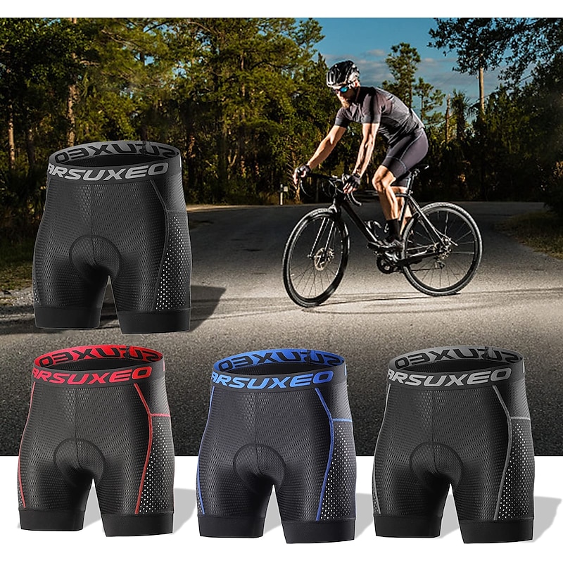 Arsuxeo Men's Cycling Padded Shorts Cycling Underwear Bike Padded Shorts 5D padded Chamois Bottoms Breathable Sweat wicking Sports Solid Color Black Red Gray Bike Wear 24