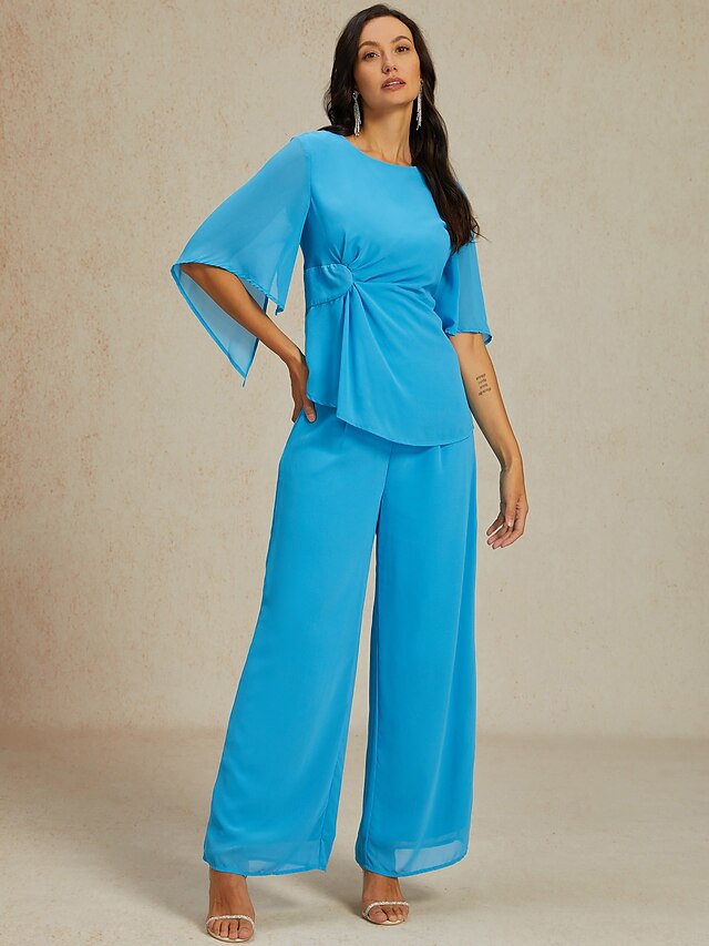 More information about Women's Elegant Stylish Blouse Pants Trousers Half Sleeve Crew Neck Plain Ruched Wedding Guest Daily Blue Summer Regular Fit