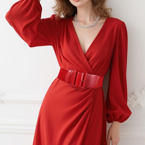 Stretchy Wide Women Belts Red Elastic Vintage Belts for Women Suitable for Dresses Shirts Halloween Christmas Clothing Accessories Gifts 2.95" Width 6