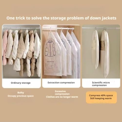 • 【Protect your clothes】Unlike other storage bags,our space-saving garment hangers won't ruin the fluffiness of your down jacket,preventing wrinkles and distortions so that when you pull it out in the next cold season,it'll still be neat. Provide a clean,separate space for your clothes and keep them in perfect condition all year round.