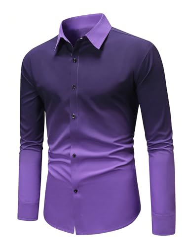 OYOANGLE Men's Ombre Long Sleeve Dress Shirts Button Down Collared Work Shirt Top Business Formal Shirts 6