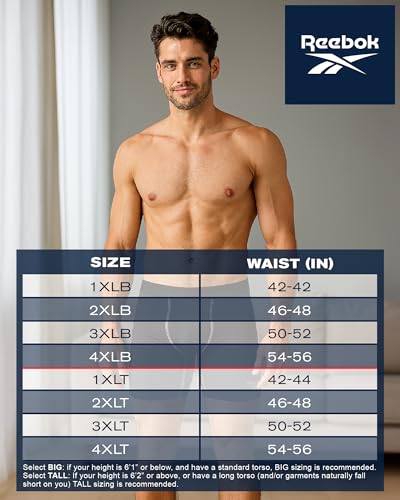 • BREATHABLE PERFORMANCE: Crafted with moisture-wicking fabric, Reebok's big and tall boxer briefs for men help keep sweat away from your skin, ensuring you feel fresh and dry. Ideal for active lifestyles, these breathable boxers allow air to circulate, keeping you cool during workouts, sports, or warmer days. Enjoy underwear that prioritizes your comfort and lets you stay confident, no matter where the day takes you.