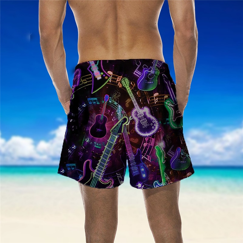 HOT ! Men's Graphic Guitar Musical Instrument Swim Trunks Swim Shorts Board Shorts Mid Waist Hawaiian Designer Boho Casual Daily Holiday Drawstring with Mesh lining Elastic Waist Designer Clothing Apparel