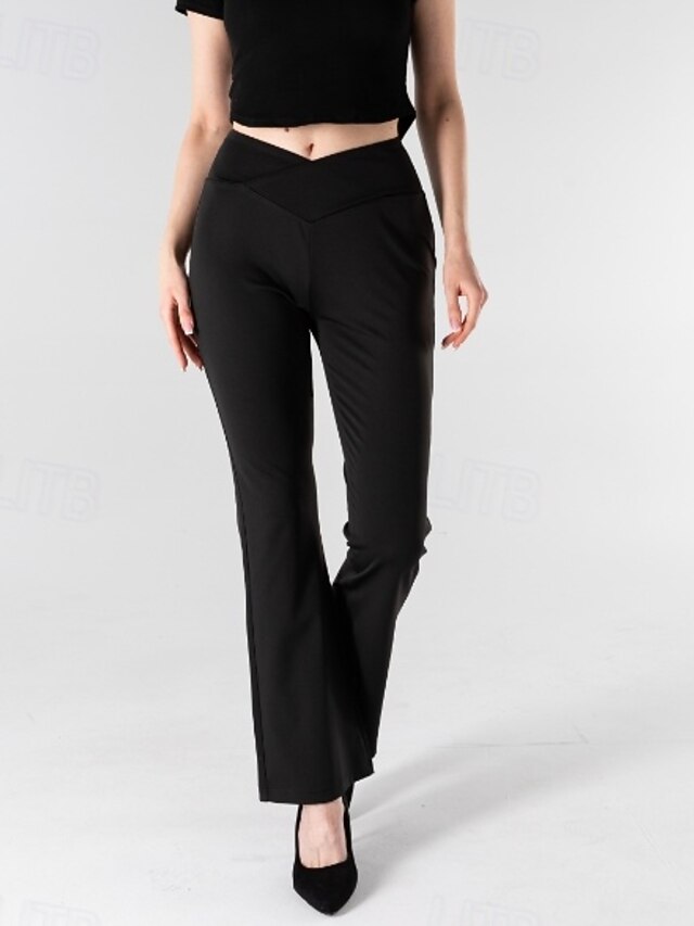 More information about Women's EU / US Size Flare Leggings Cozy Leggings Comfort Full Length Mid Waist Solid Colored Soft Comfortable Micro-elastic Yoga Daily Wear Black 1# Spring, Fall, Winter, Summer Slim Fit