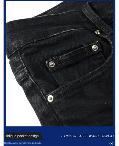 More information about Jeans Pants Trousers Denim Stretch Tight Black Washed Street Trendy Casual Commuting Small Leg for Men(Black,32)
